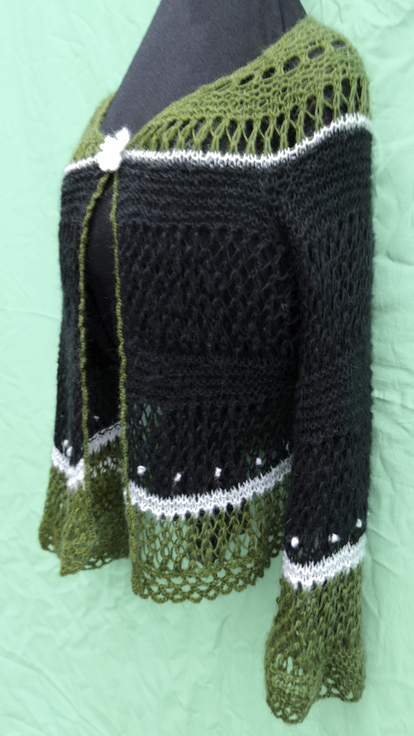 Harsokorennon idea on olla äärettömän kevyt ja kaunis värilisä kesäiselle hihattomalle asulle. Sen verkkomainen rakenne kirkkaine väreineen näyttää kauniilta kesäistä ihoa vasten, ja alla olevan vaatteen väriä ja tyyliä vaihtamalla sen ilme muuttuu tyylikkäästä aistilliseksi. Neuleessa on 3/4 hiha.
